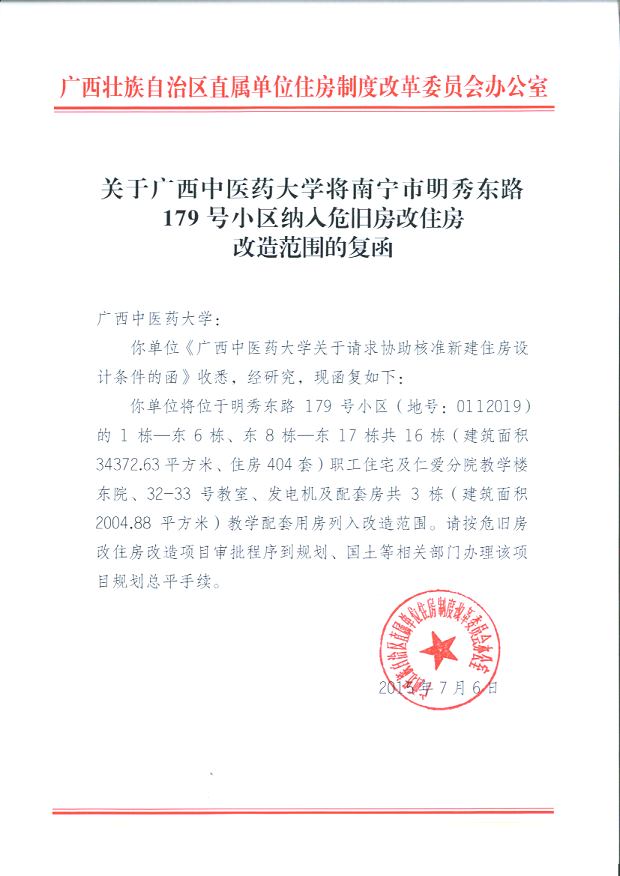 取得《关于beat365正版唯一入口必一将南宁市明秀东路179号小区纳入危旧房改住房改造范围的复函》 发布时间:2019-08-07 10:24:16 浏览次数: 次 【字体:小 大】 2015年7月6日,取得广西壮族自治区直属单位住房制度改革委员会办公室《关于beat365正版唯一入口必一将南宁市明秀东路179号小区纳入危旧房改住房改造范围的复函》。 分享到: 【打印正文】