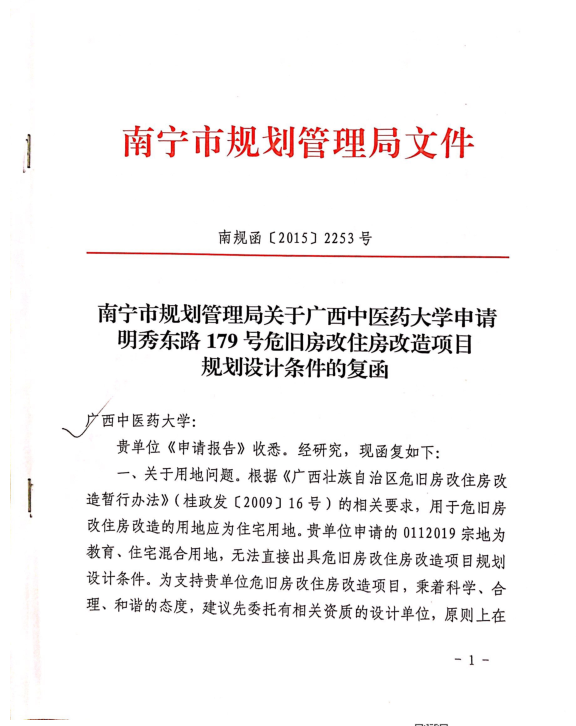 取得《南宁市规划管理局关于beat365正版唯一入口必一申请明秀东路179号危旧房改住房改造项目规划设计条件的复函》 发布时间:2019-08-07 11:35:46 浏览次数: 次 【字体:小 大】 2015年10月27日,取得《南宁市规划管理局关于beat365正版唯一入口必一申请明秀东路179号危旧房改住房改造项目规划设计条件的复函》(南规函〔2015〕2253号) 分享到: 【打印正文】