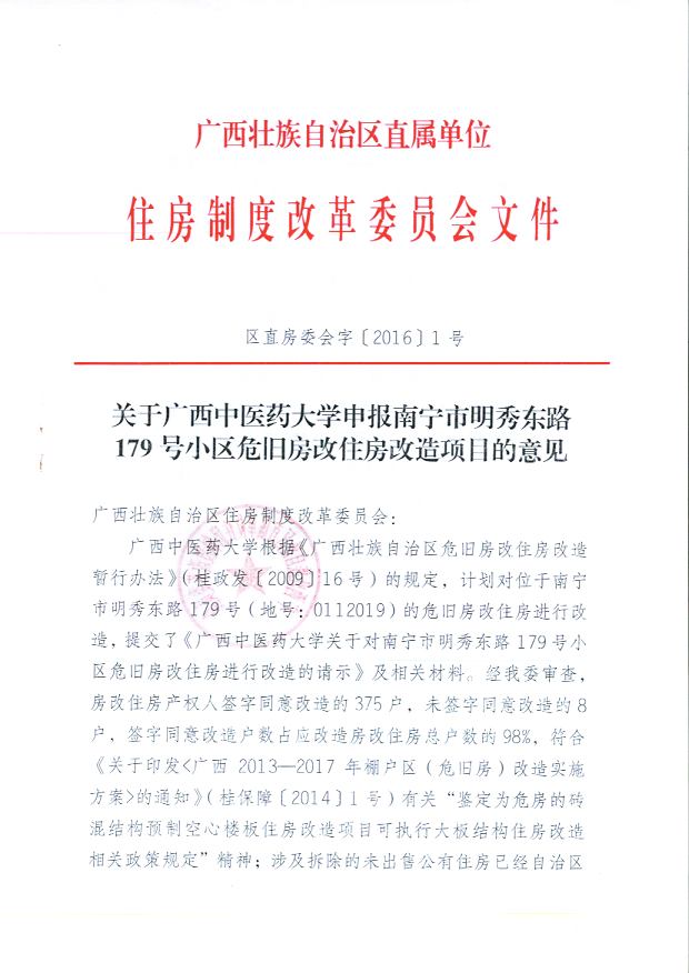 取得《关于beat365正版唯一入口必一申报南宁市明秀东路179号小区危旧房改住房改造项目的意见》 发布时间:2019-08-07 11:41:28 浏览次数: 次 【字体:小 大】 2016年2月3日,取得广西壮族自治区直属单位住房制度改革委员会《关于beat365正版唯一入口必一申报南宁市明秀东路179号小区危旧房改住房改造项目的意见》(区直房委会字〔2016〕1号) 分享到: 【打印正文】
