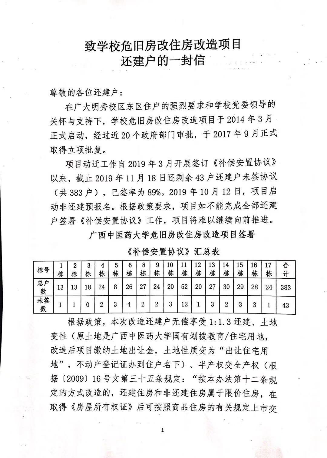 致学校危旧房改住房改造项目还建户的一封信