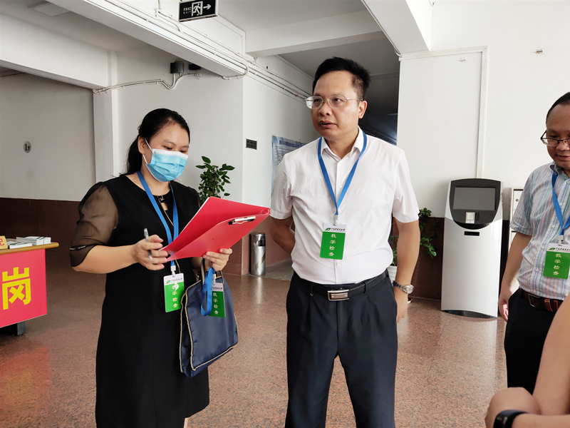 8月29日是新学期开学第一天,按照防疫要求,学校开学第一周实行线上教学。学校党委书记莫锦荣、副书记何并文、纪委书记覃宇环、总会计师何刚亮深入仙葫和明秀校区教学一线,对开学首日教学运行情况进行全面检查和工作部署,各相关职能部门负责人陪同。