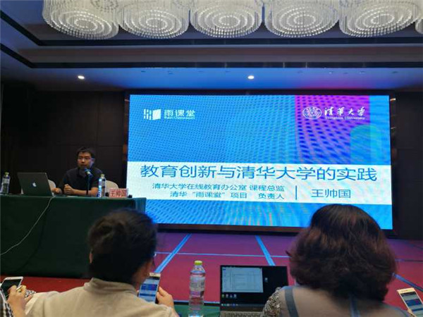 23日的工作坊围绕“在线课程的结构与特征”、“在线课程的设计与运营”和“混合式教学与翻转课堂”三个专题进行。王帅国老师向参会教师介绍了在互联网+的背景下,教学模式、教学理念的转变以及慕课设计与翻转课堂在清华大学的实践,与大家分享了在线课程制作的步骤,为教师改变教学模式提供了指引。