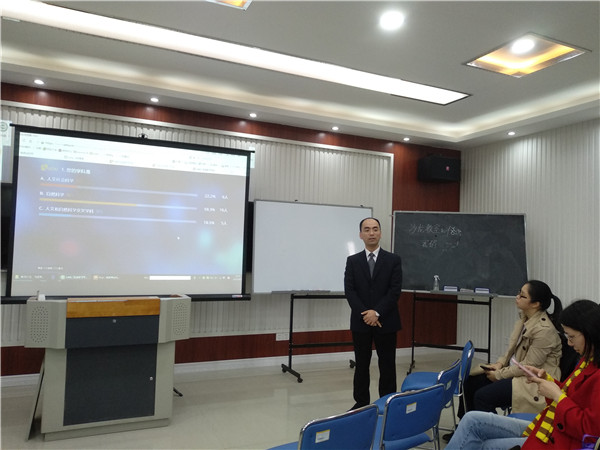 本次教学沙龙活动由外语部周锋老师主讲,周老师从出国访学的动机、出国英语考试、英语能力培养等几个方面与在座教师展开交流,从各项政策文件的解读,到PETS、IELTS、TOEFL等英语考试介绍,再到英语“习得”与一万小时定律等英语学习建议,让老师们对出国访学及英语考试有了全面的了解,“英语——想说爱你不容易”,老师们同时收获了英语学习的实用技巧。
