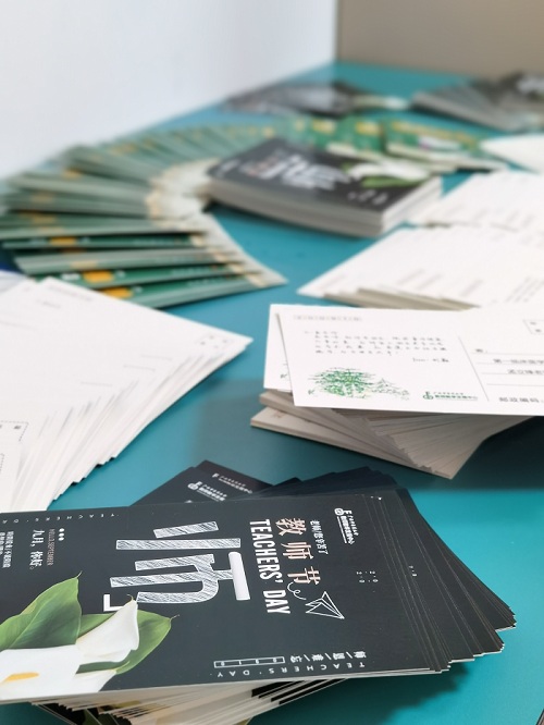 由教师教学发展中心联合校团委、学生工作处共同策划的教师节送祝福活动从8月20日起拉开帷幕,通过微信公众号发布活动通知,在十天时间内收集学生对老师的节日祝福。因正值暑假,学校用一种特殊的方式征集祝福,学生们在家利用纸和笔亲手写下想对老师说的心里话和美好祝福,通过扫描二维码进入上传页面,拍照上传,将祝福送出。在征集时间截止后由管理后台对收集到的祝福进行分类汇总,将给每位老师的祝福单独“打包”起来,印制成特殊的祝福贺卡,在教师节来临之际一一送达老师们手中。虽在假期,但本次活动仍然得到了学生们的热烈关注,参与人数达到2100多人,他们有的是在校学生,有的是已经毕业走向工作岗位的校友,因看到了“祝福征集令”踊跃参加活动,用笔墨书写自己对老师的感激之情。活动收到的2758条祝福,这些祝福经过精心地整理和设计后送达627位老师手中,成为他们在今年节日最特别的礼物。