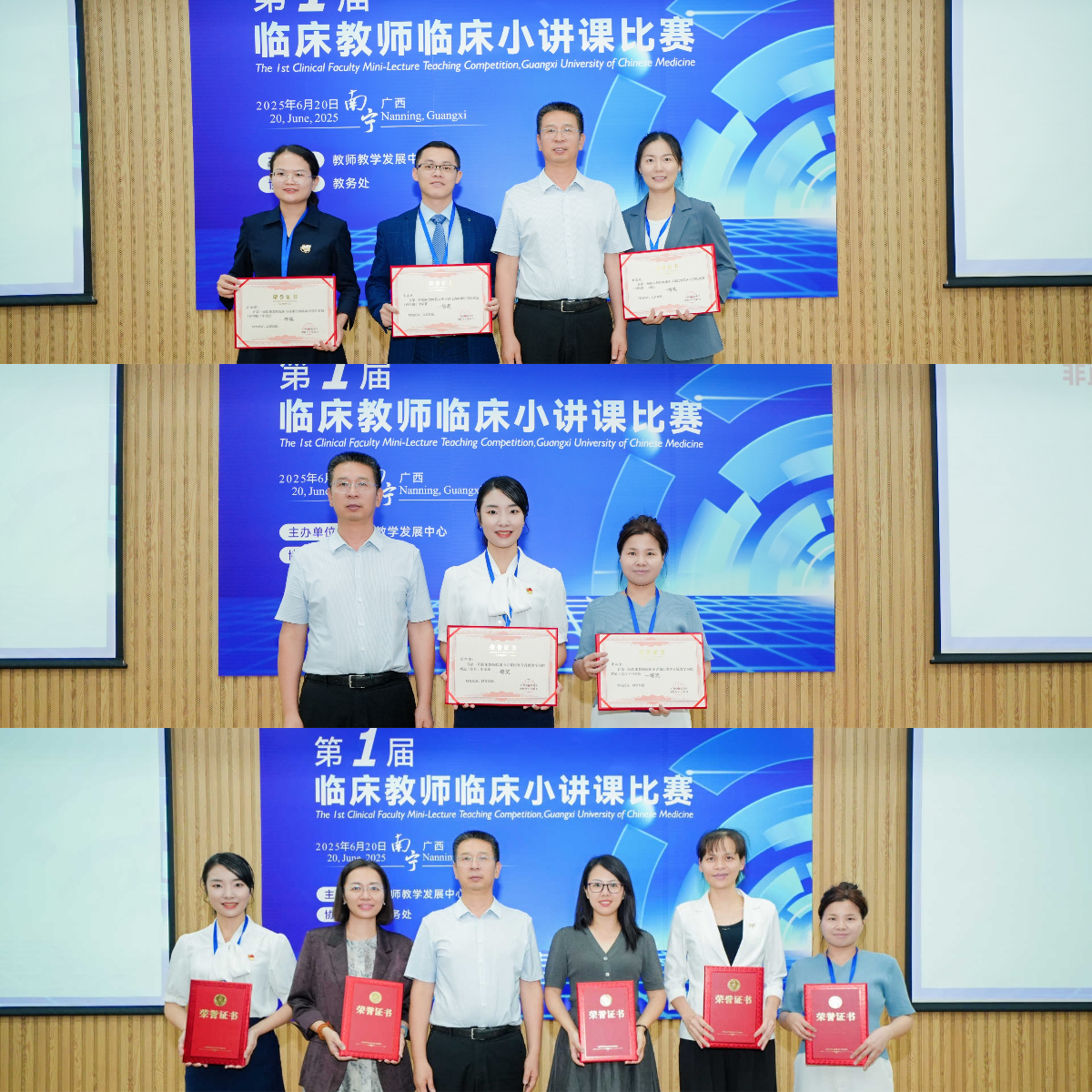 本次比赛共评选出一等奖 5 名、二等奖 9 名、三等奖 17 名及优秀奖 22 名。第一临床医学院、壮医临床医学院等 5 家单位获得优秀组织奖。(详细获奖情况见附表)