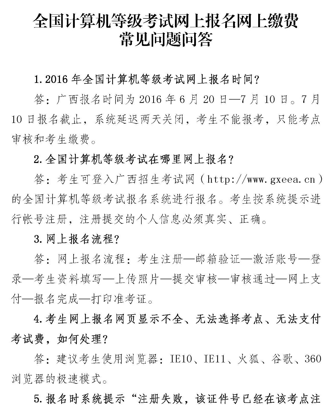 全国计算机等级考试网上报名网上缴费常见问题问答
