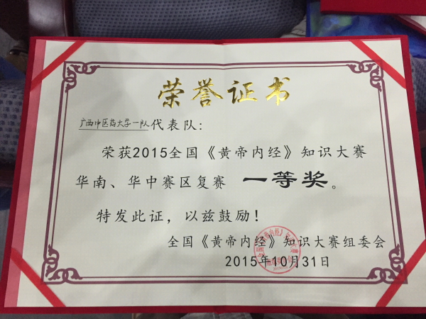 10月31日华中华南赛区复赛在广州中医药大学举行。参赛队秉承“弘毅自强,传承创新”、“八桂中医,传承经典”,团结睿智,过关斩将,以总成绩第三名的优异成绩,顺利挺进全国总决赛。