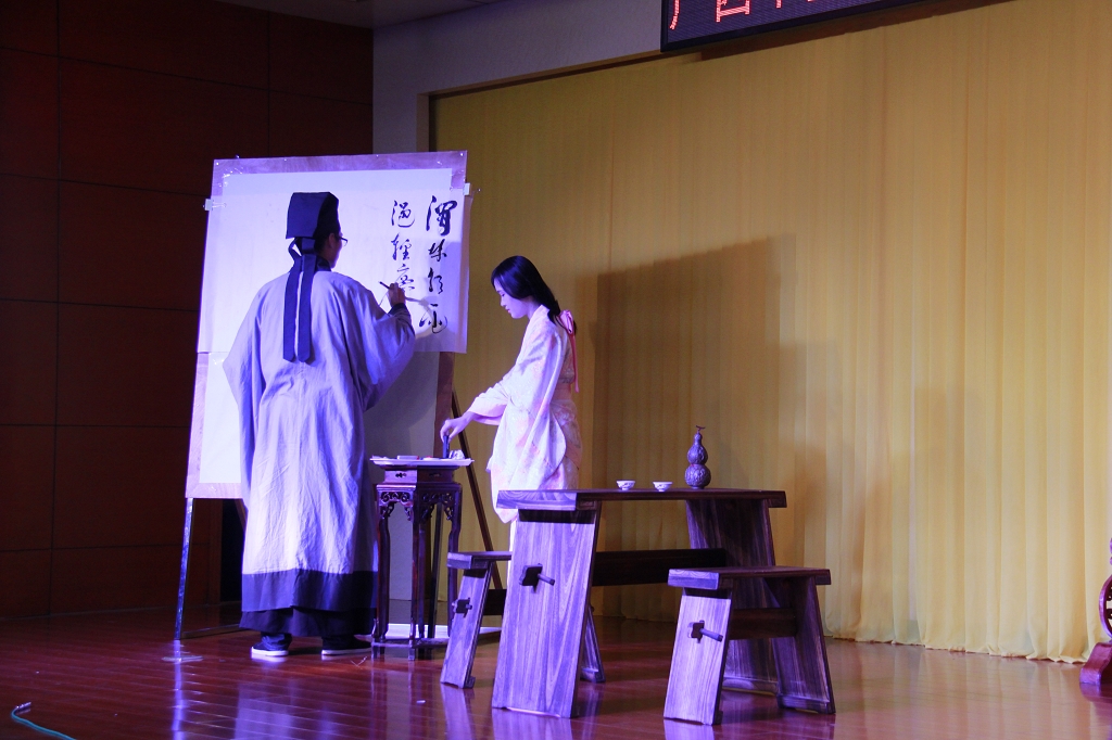 音乐会由古琴社社员演奏《日暮云林》拉开序幕,古琴悠扬的泠泠之音,沁人心脾;阮籍所作《酒狂》与陶渊明《归去来辞》风格迥异的两个古琴之曲,古琴社社员的演绎出以乐终身之志与归隐田园的洒脱交相辉映,相得益彰;更有古琴、箫、鼓合奏《沧海一声笑》,浅唱低吟中勾勒出江湖之情的豪迈,汉服舞蹈《礼仪之邦》,跳出传统文化之美,《阳关三叠》的表演融入书法、古琴,优美的古琴声令人如痴如醉、如梦如幻,琴声绕梁三日,不绝于耳。