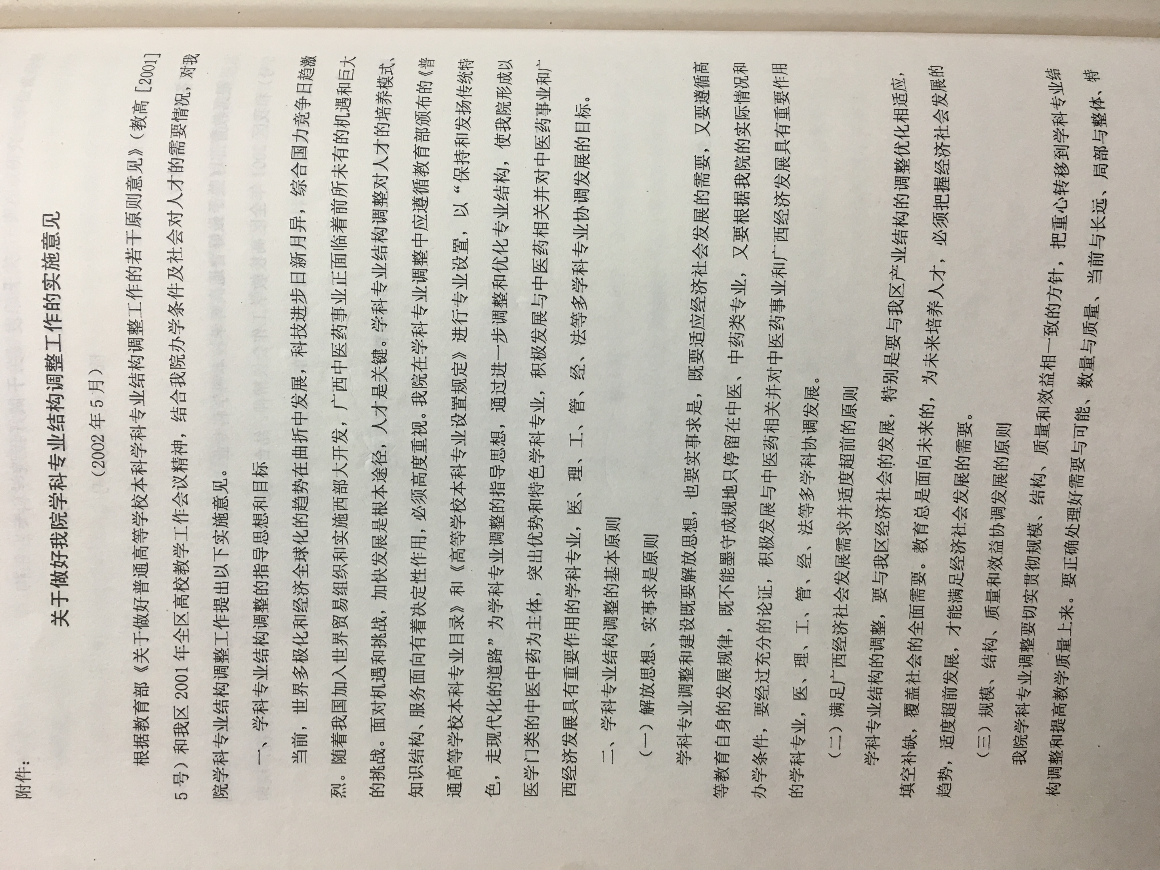 1. 关于做好我院学科专业结构调整工作的实施意见(截图)