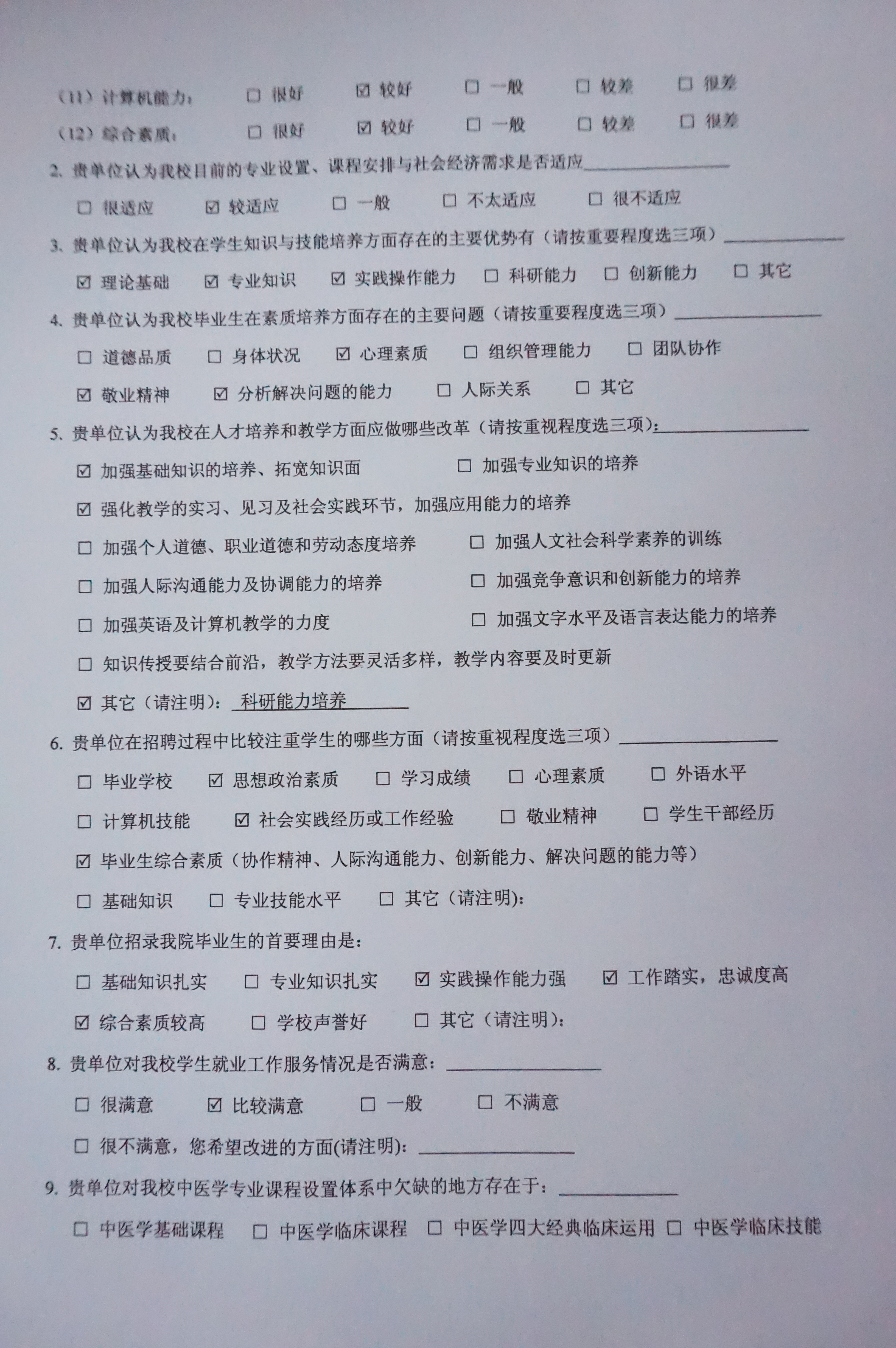 3. 人才培养方案用人单位调查问卷反馈
