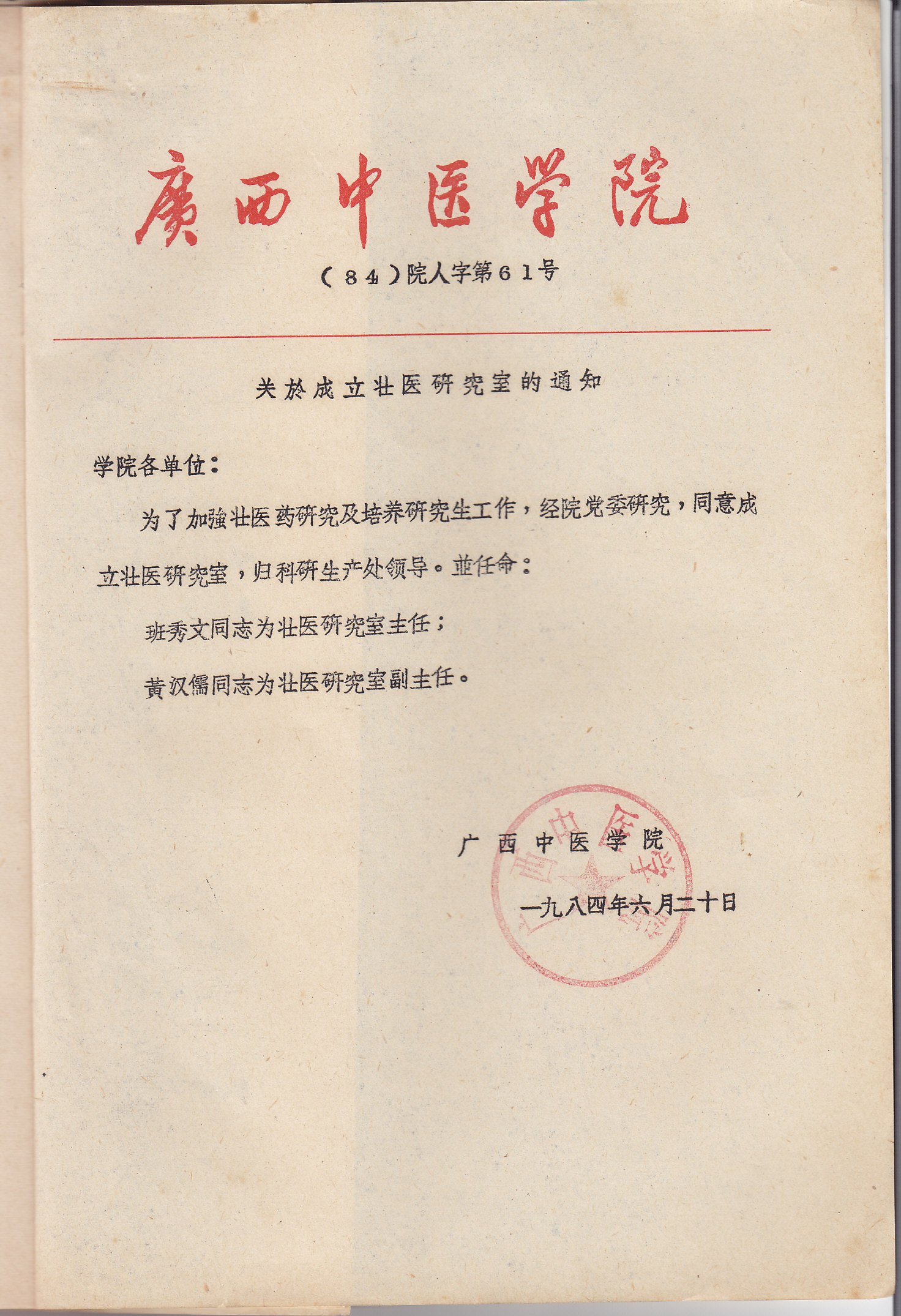 3. beat365正版唯一入口必一(原广西中医学院)壮医药研究机构成立文件