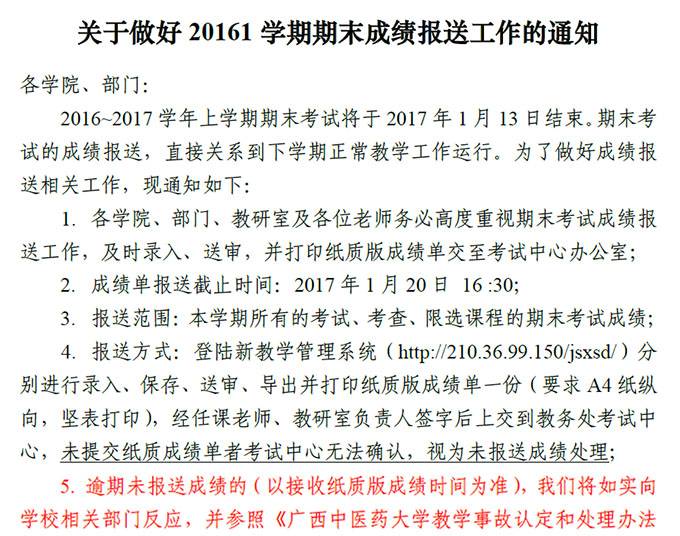 关于做好20161学期期末成绩报送工作的通知