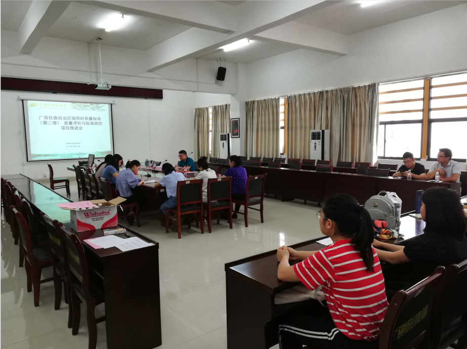 5月29日,beat365官网在仙葫校区召开广西壮族自治区瑶药材质量标准(第二卷)质量评价与标准研究项目推进会。学校科技处工作人员及项目组代表20余人参加会议。会议由科技处副处长唐耀平主持。