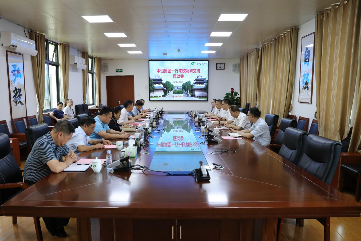 2025年5月19日,广西梧州中恒集团股份有限公司党委书记、董事长杨金海,党委委员、副总经理陈明一行五人来beat365官网调研座谈。座谈会由学校党委常委、副校长肖健主持,科技处及相关部门负责人参会。