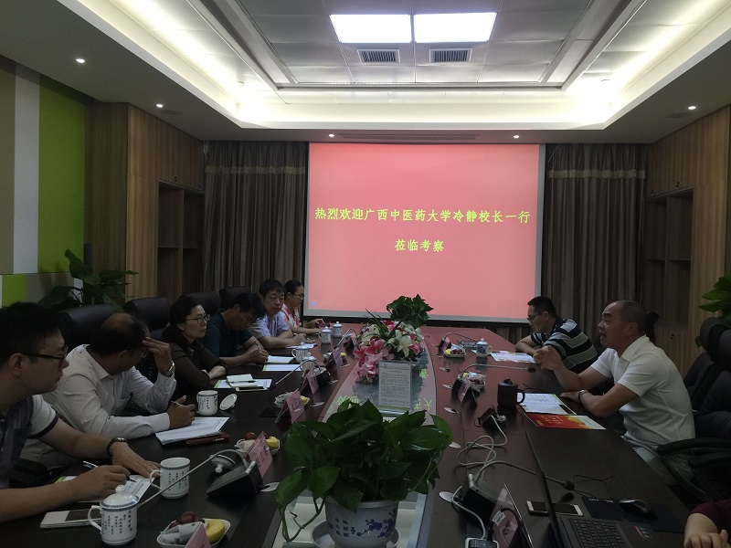 双方代表进行了座谈。无锡格菲电子薄膜科技有限公司戎裕平生产副总、刘海滨博士介绍了石墨烯薄膜及产品研究进展与现有可应用开发的石墨烯产品等情况。无锡脑镁素生物医药科技有限公司骆权峰总经理介绍了MagteinTM系列产品的研发、生产情况,并对石墨烯新材料的特性、发展前景进行了说明,希望能借助高校的技术力量与科研平台在石墨烯的中医药产品研发与医疗器械的临床试验等方面与beat365官网开展广泛的合作。冷静副校长介绍了beat365官网的发展历程、科研团队与科研基地、中医药研究成果、尤其是壮瑶医药研究特色与成果等情况,希望以此次考察为契机,发挥学校自身的优势,积极与企业对接,探索有效的产学研结合、研发新模式,加大校企双方的合作。