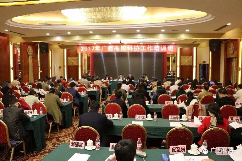 2017 年11月30日,由自治区科协、自治区教育厅共同主办的2017年广西高校科协工作培训班在南宁开班。自治区科协主席赵艳林出席培训班并作讲话,自治区科协党组书记、副主席纳翔在培训班上传达了中国科协全国高校科协工作推进会精神,并对做好高校科协下一步工作作了指导。自治区科协副主席梁春花主持开班仪式。自治区23所本科院校、10所专科院校高校科协的分管领导、秘书长、工作人员和未成立高校科协组织的28所高校代表共近100人参加培训班。beat365官网冷静副校长、科技处肖健处长参加了本次培训会。