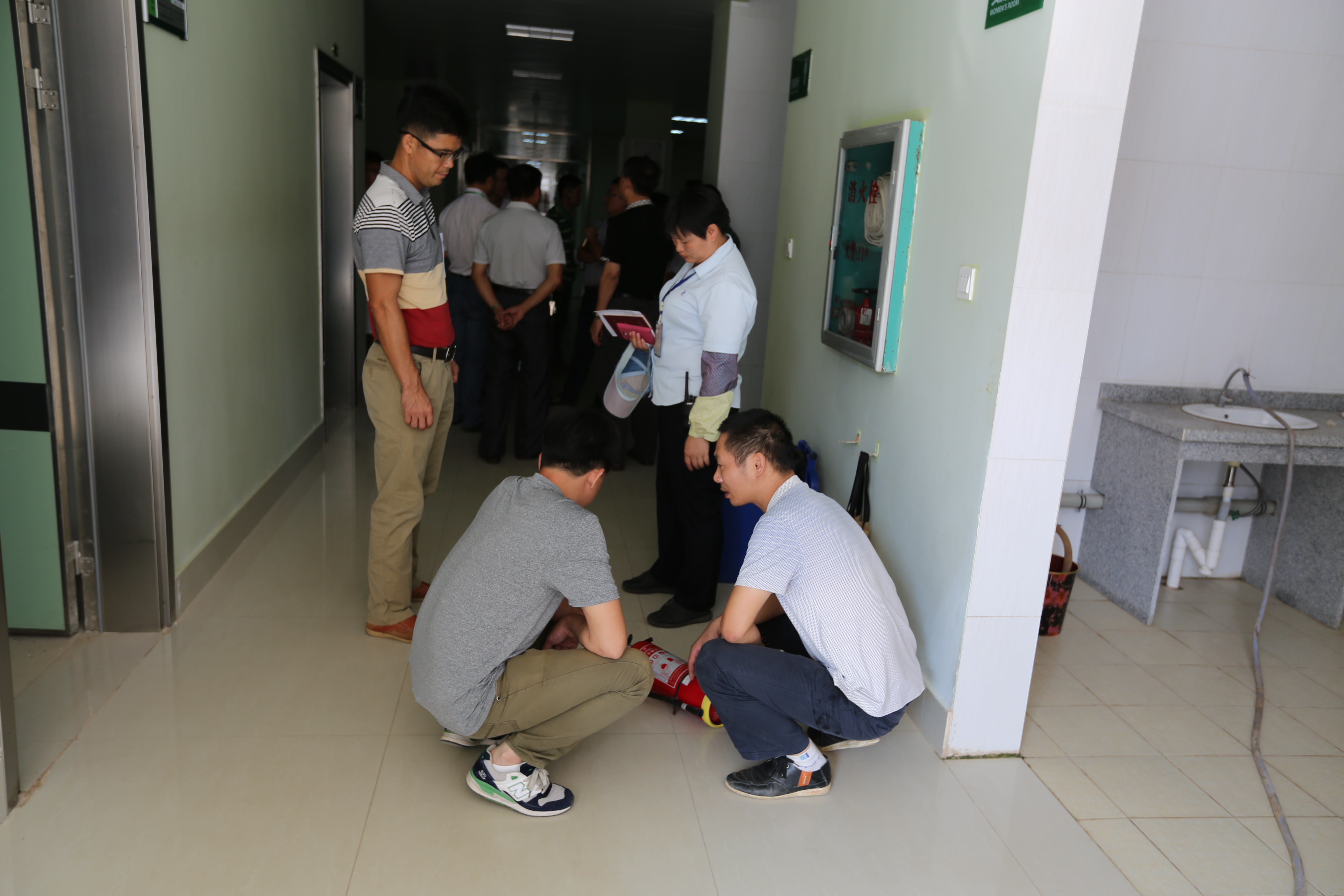 2016年10月9日上午,根据自治区教育厅《关于开展高校科研实验室安全检查的通知》(桂教科研〔2016〕16号)要求,在学校党委副书记董塔建部署下,学校武保部组织人员对我科学实验中心开展实验室安全检查工作。武保部部长韦克权、副部长武国庆和冯第林一行到现场指导检查工作,重点检查实验室消防设施是否到位、消防通道标识是否明确、应急设施是否合理。