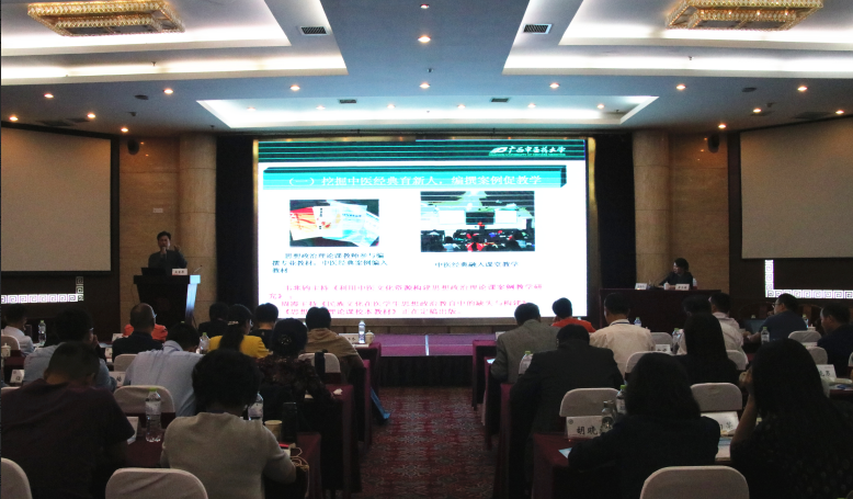 beat365官网马克思主义学院院长韦兆钧在会上作了以beat365正版唯一入口必一马克思主义学院办学特色为主题的演讲。会上介绍了beat365官网马院的基本概况并展现了beat365官网校园文化建设成果。他提出了马院如何在中医药院校生存下来并办出特色的观点,并认为可从立足地方搞科研,打造特色建品牌,大健康产业的优势着手。该经验分享获得了与会兄弟单位的一致认同。