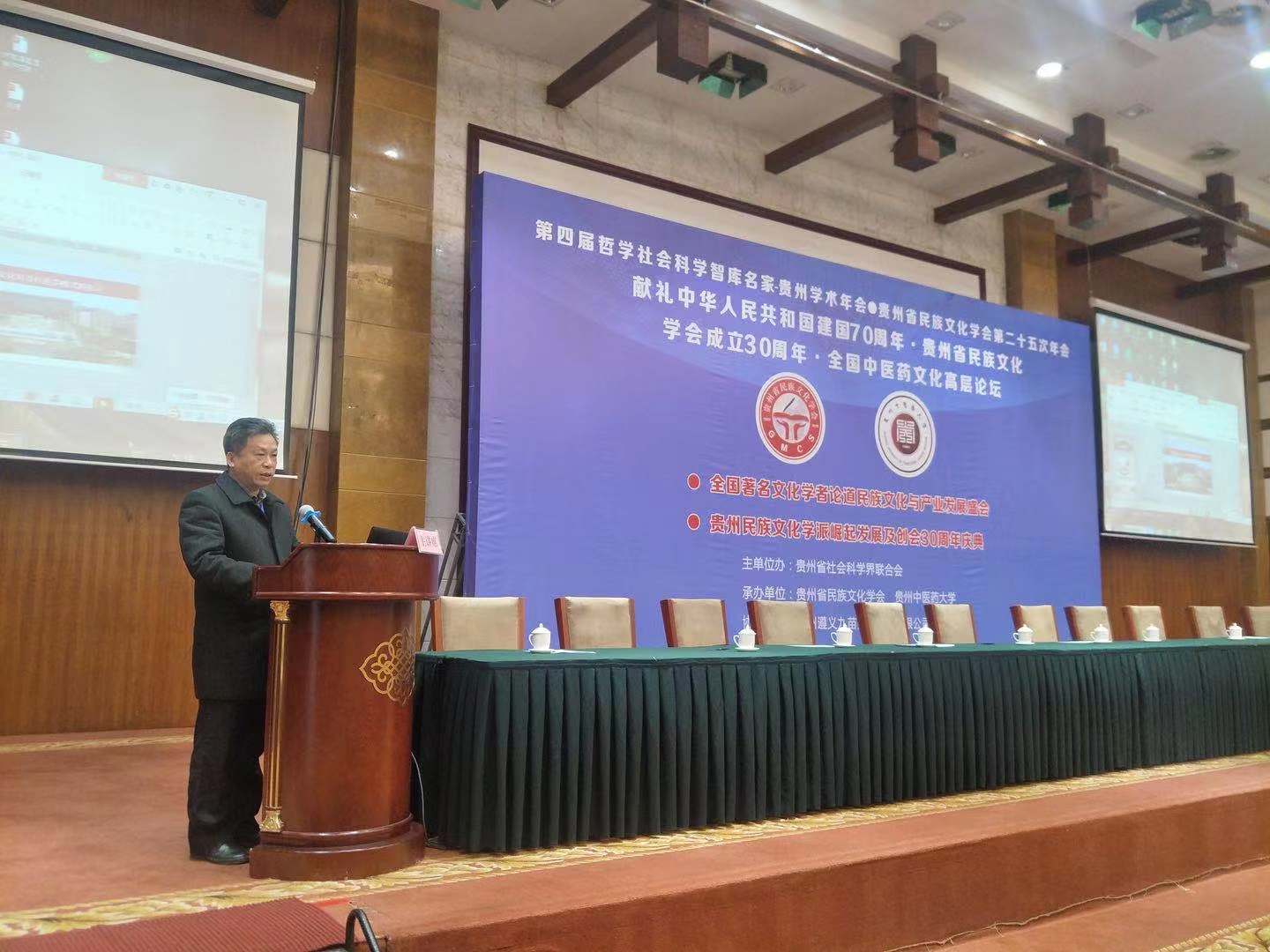 2019年11月30日,第四届哲学社会科学智库名家-贵州学术年会·贵州省民族文化学会第二十五次年会·献礼中华人民共和国建国70周年·贵州省民族文化学会成立30周年·全国中医药文化高层论坛在贵阳召开,自北京、浙江、江苏、湖北、广西、甘肃、云南、贵州等省市区的上百名著名文化学者和中医文化专家汇集贵阳花溪,论道民族文化与中医药文化的发展。此次会议邀请了8名专家做演讲分别来自贵州、北京、湖北、广西,beat365官网马克思主义学院院长韦兆钧作为特邀专家之一参加此次会议并做了演讲汇报。