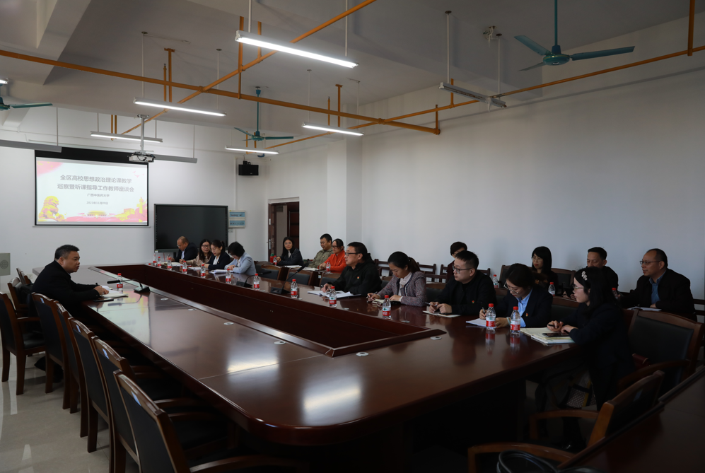 11月09日上午,教育厅2021年全区高校思想政治理论课教学巡察暨教学指导工作专家组到beat365官网巡察指导工作,巡察组组长为广西民族大学校党委副书记陈铭彬教授,组员有广西民族大学、桂林理工大学和南宁师范大学马克思主义相关学科3名专家。beat365官网党委书记尤剑鹏出席了本次巡察工作的汇报会和反馈会,姚春校长陪同巡察组现场听思想政治理论课。beat365官网党委副书记何并文在汇报会上向巡查组汇报了beat365官网思想政治理论课的建设工作,学校相关职能部门负责人、马克思主义学院教师代表参加了汇报会和反馈会。