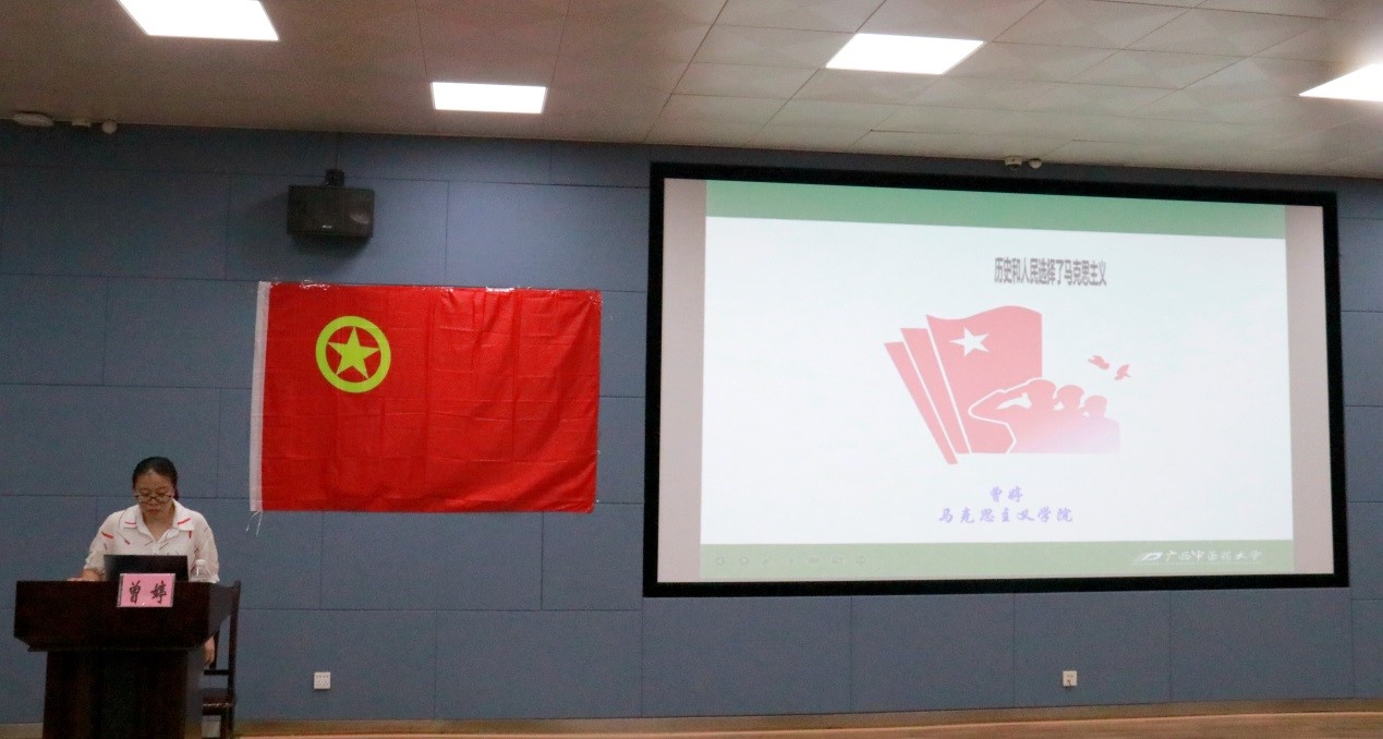 曾婷老师给“青马工程”的学员们作了题为《历史和人民选择了马克思主义》的专题理论辅导。曾婷老师以“中国当时的知识分子为何对马克思主义情有独钟?”这一问题为引子,深入引导学生从当时世界局势变化的客观因素,马克思主义理论的内在吸引力以及中国知识分子对改变中国落后面貌的强烈诉求等主观因素,全面深刻地理解中国人民为何选择马克思主义,并进一步引导学生思考,中国人民选择马克思主义之后,给中国社会带来怎样的变化。曾婷老师用通俗易懂地语言阐明深刻的理论,讲解接地气,学生有共鸣。全体学员在重温二十世纪初的中国近代历史中,深刻把握了历史和人民选择马克思主义的必然性,从而进一步地坚定马克思主义的信仰。
