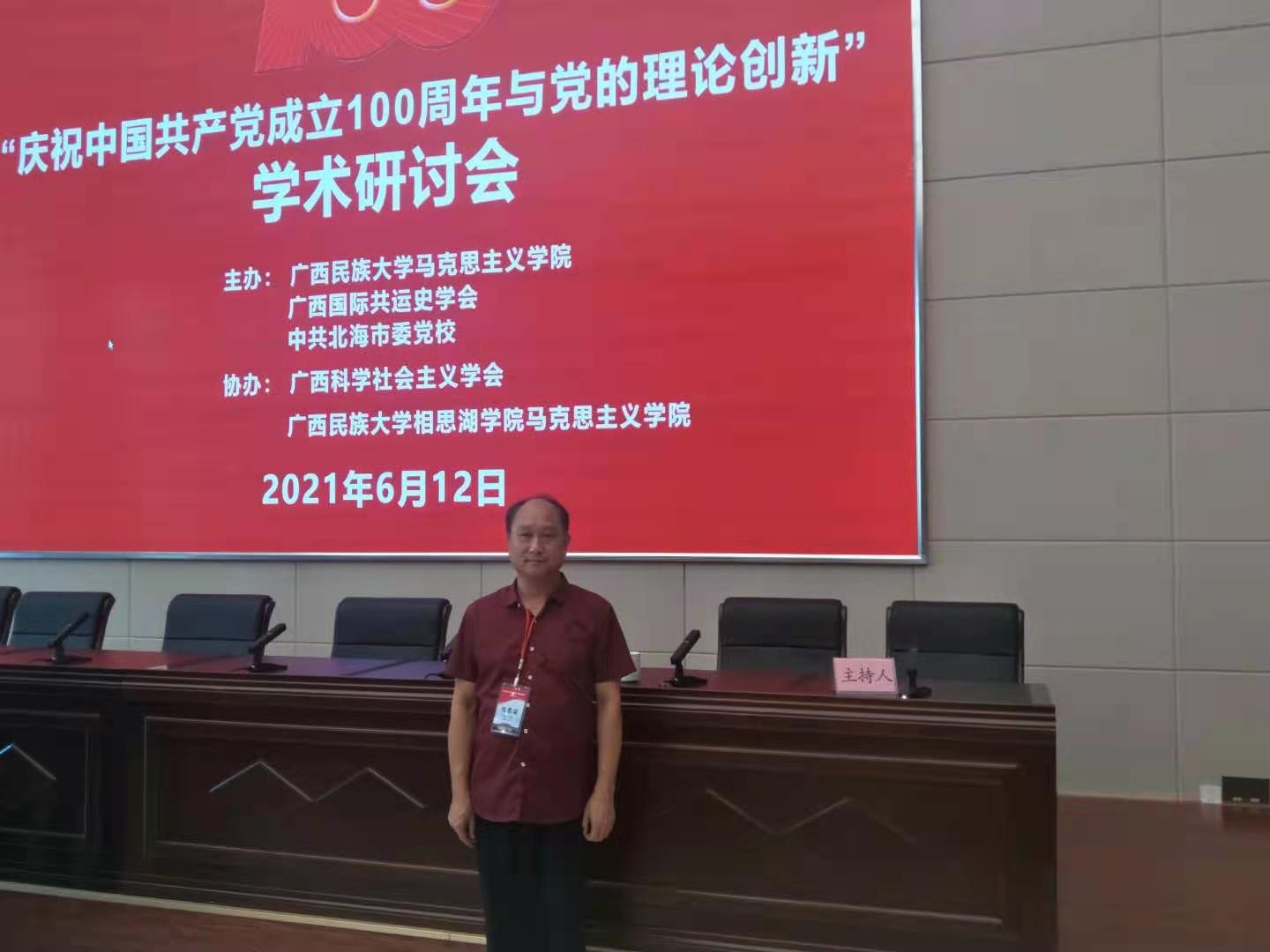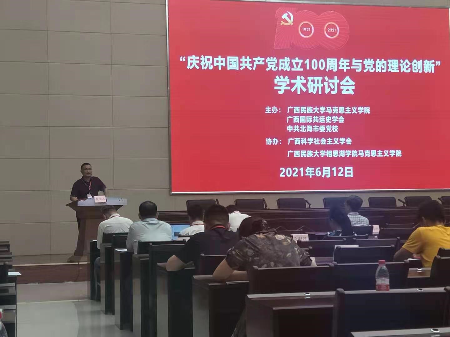 2021年6月12日,唐踔研究员与刘昊教授参加了“庆祝中国共产党成立100周年与党的理论创新"学术研讨会。研讨会由广西民族大学马克思主义学院、广西国际共运史学会和中共北海市委党校共同主办,由广西科学社会主义学会、广西民族大学相思潮学院马克思主义学院协办。唐踔研究员在会上作了主题发言。(刘昊供稿)