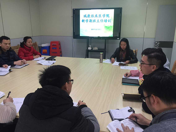 为加强瑞康临床医学院班主任队伍建设,有效提高班主任班级管理及指导水平,更好地指导大学生规划学习与生活,2月23日下午,我院在A座十楼会议室举行2017年班主任培训会议,陈日兰副书记出席会议作指导,各年级班主任及辅导员参加了会议,教务学生党总支书记王瑜主持会议。