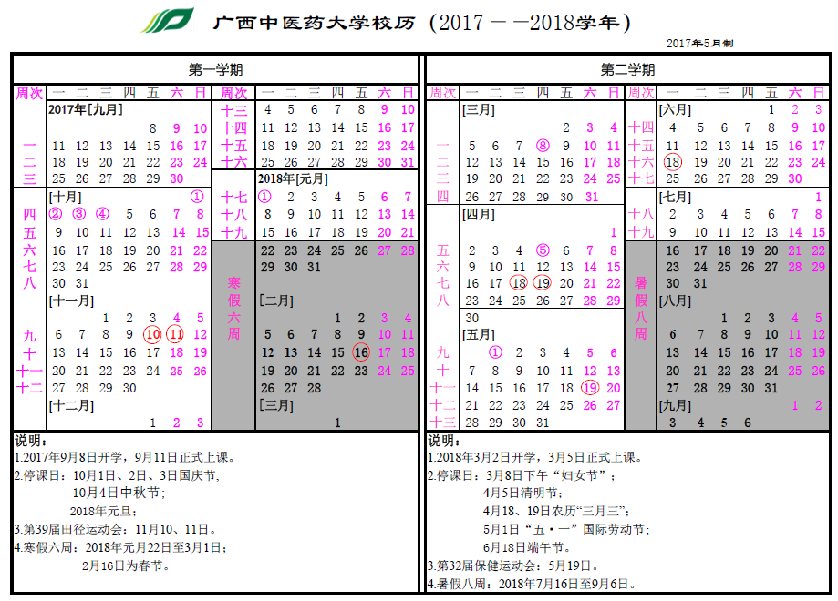 2017--2018学年校历