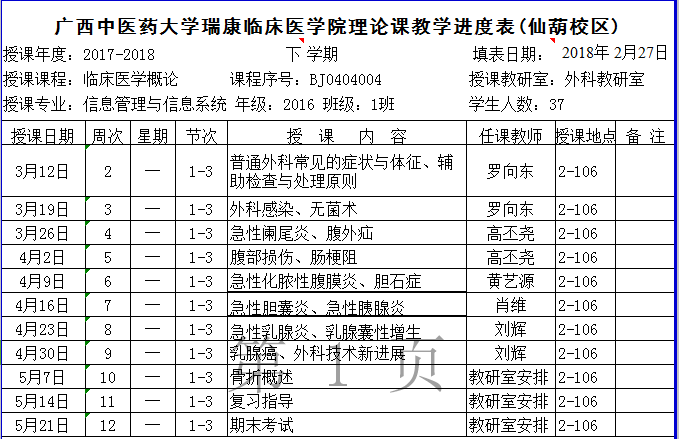 2017-2018下2016信息管理与信息系统1班《临床医学概论》理论课