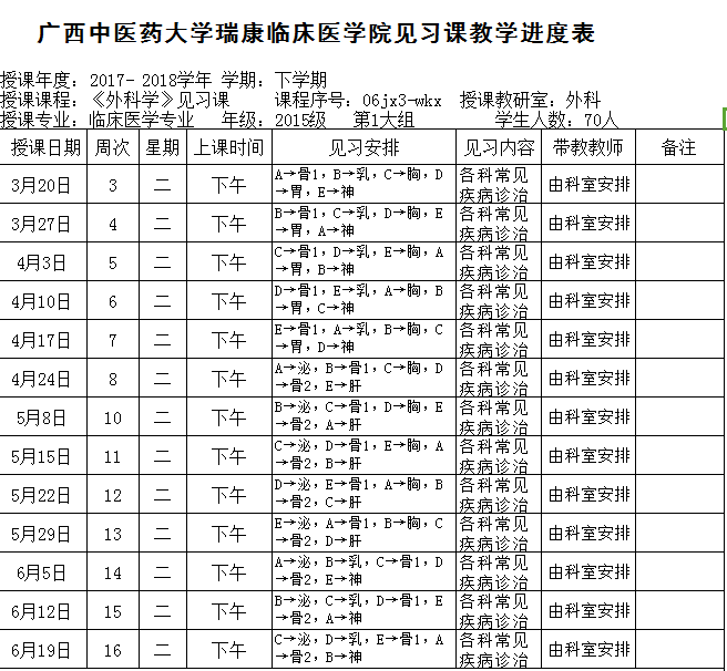 2017-2018下15级临床第1大组《外科学各论》见习进度表