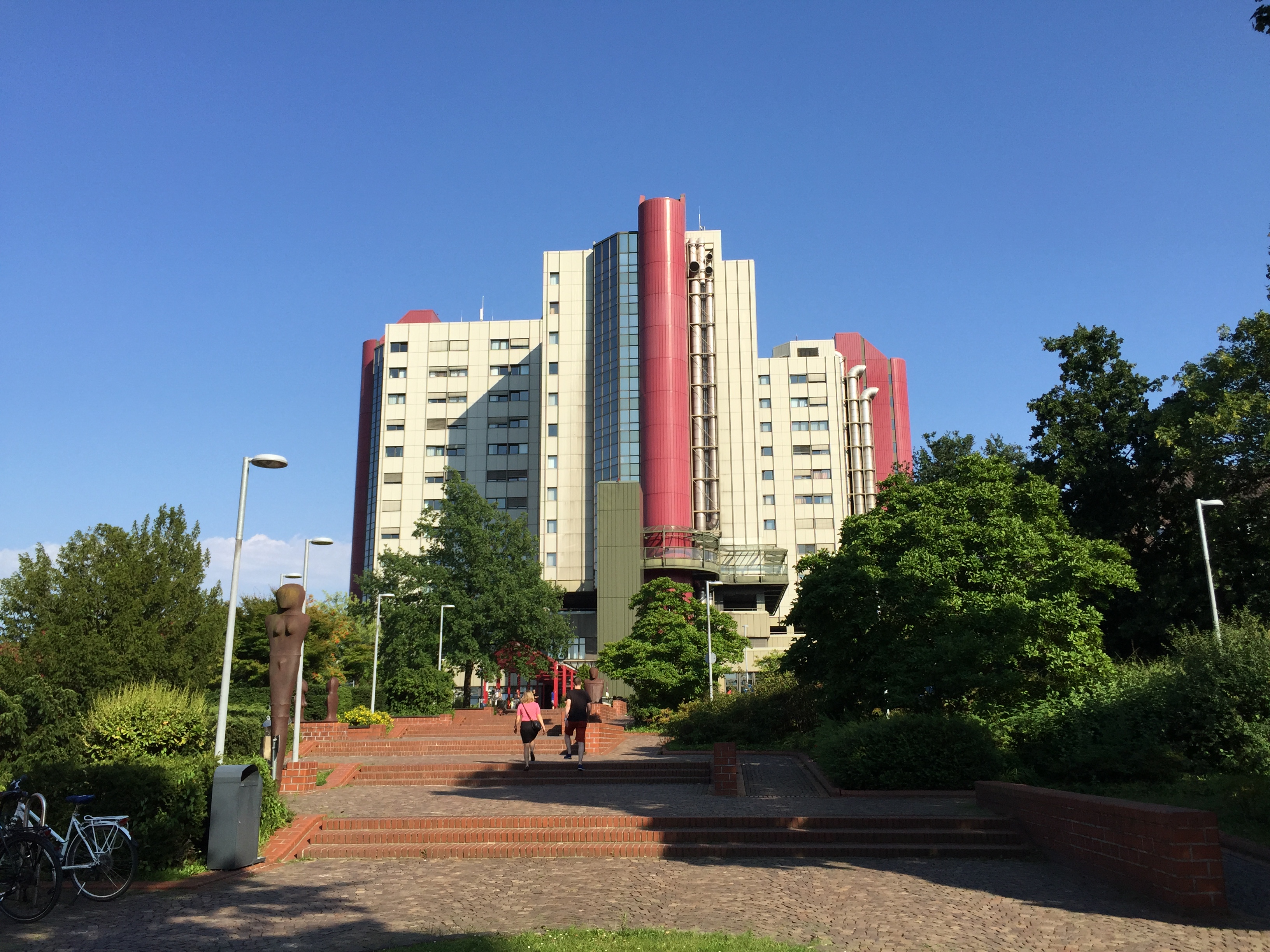 接受我进修的德国比勒菲尔德城市医院位于比勒菲尔德(Bielefeld)市,是德国西北部北莱茵-威斯特法伦州的一座中等城市(德国城市规模排名在第18位)。该市常住人口30多万,他们享受着公园般的城市环境。医院位于城市中心,临近托伊托堡森林山岭,可远眺山岭上的城市市标-Sparrenburg古城堡。