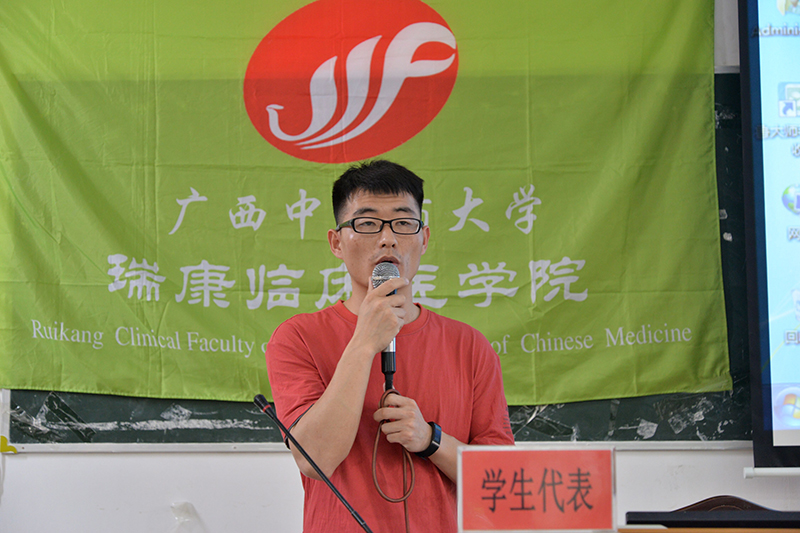 最后,实习生代表上台发言并庄严宣誓:实习期间,我们必定恪守医学生誓言,发挥主观能动性,多听、多问、多动手,对自己负责,对老师及病人负责,不负母校苦心培养和殷切期盼。