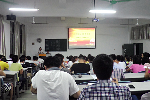 为使活动形式多样、内容丰富、效果好,各班级班委积极响应,以PPT演示、视频播放相结合的形式向同学们讲解了“九一八”事变、“七七”事变、南京大屠杀、日本投降签订无条件投降书等历史事件以及2015年9月3日中国人民抗日战争胜利70周年大阅兵的盛况,提醒同学们勿忘国耻,要有忧患意识,努力学习,为中国梦的实现贡献自己的力量。