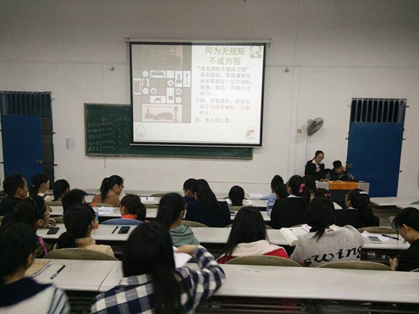 为加强学生遵纪守法的意识,2016年3月27日晚,我院教务学生党总支与团总支学生会在明秀校区联合开展“无规矩,不方圆”主题团日活动。