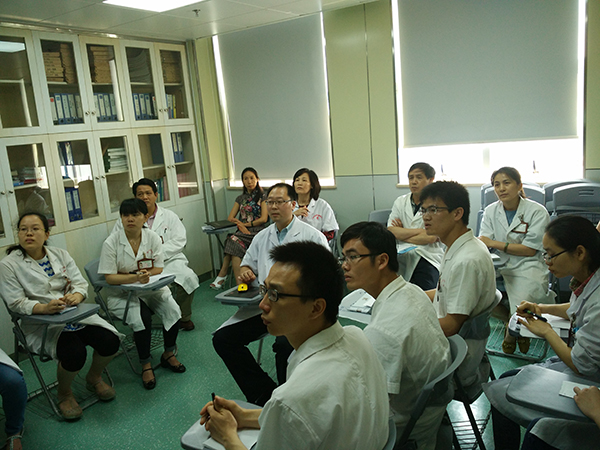 档案检查结束后,专家组到神经内科一区和心血管内科二区检查教学查房情况。在教学查房点评中,唐梅文处长对我院在教学查房方面所作的努力给予充分肯定,他指出,在教学查房讨论环节,为了发挥学生自主讨论的积极性,应该尽量由学生主导,同学间应有发散性思维,互相质疑,产生思维碰撞,主持老师尽可能引导学生们自由思考、自由辩论,发表不同意见,积极参与到教学查房讨论中来,充分体现“以学生为中心”的教学理念。
