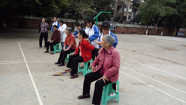 同学们为老人按摩
