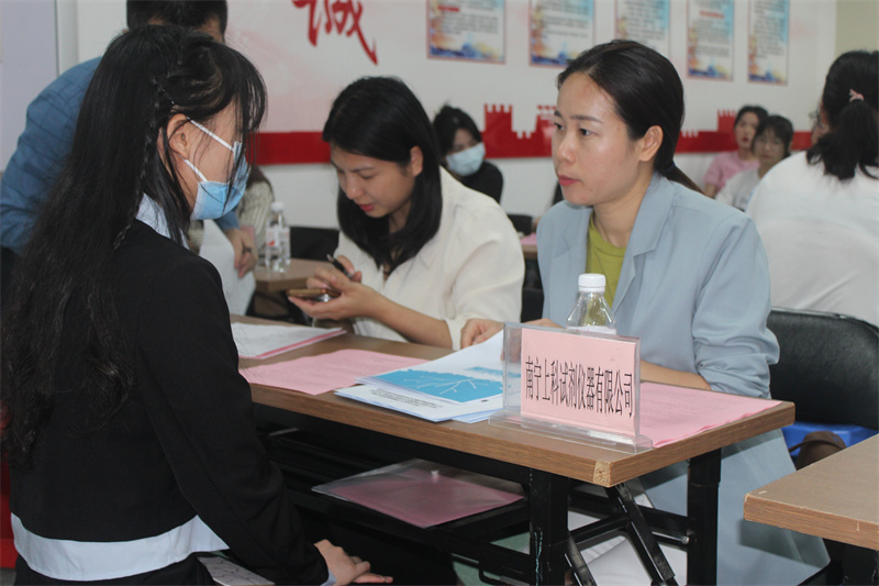 在医学检验技术和医学影像技术专业专场招聘大会上,同学们积极与企业面试和交流,与招聘单位达成就业意向。据悉,本次参会招聘单位共10家,岗位数量有80个。
