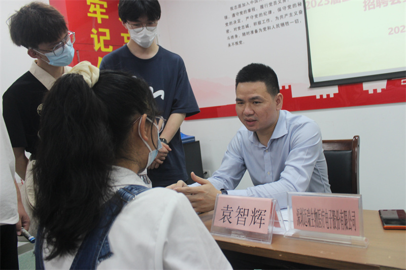 招聘会上,迈瑞生物南宁分公司经理袁智辉以《寻找攀登者》为题给同学们上了一场生动的就业指导讲座。讲座从企业的视角来分析企业的用人需求,学生能够以终为始在不同的阶段能够做好定位制定目标,不断提升职场能力。他指导学生注意面试要领,学会制作简历,从细节方面做好就业的准备。