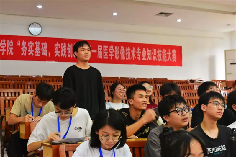 本次医学影像知识大赛分为个人赛和小组赛两个环节。在个人赛中,同学们展现了对医学影像技术的理解和反应能力。小组赛则考验了同学们的团队协作和应变能力,展示了集体智慧和团队精神。在整个比赛过程中,同学们热情高涨,气氛非常活跃,他们充分展现了在医学影像技术领域的专业技能和独特见解,为比赛增添了无数亮点。经过激烈的角逐,通过个人总成绩的排名,比赛评选出一、二、三等奖。