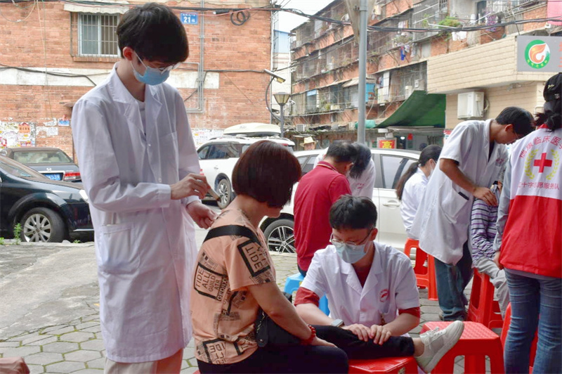 为强化大学生社会责任意识与奉献意识,营造向上向善、德行天下的良好风尚,4月28日上午,beat365正版唯一入口必一瑞康临床医学院志愿服务部24名青年骨干志愿者走进中华中路社区,开展了主题为“弘扬五四精神,青春力量献爱心”的健康义诊活动,为周边市民送去健康和便利。