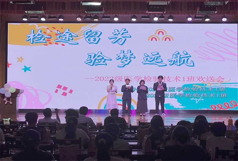 5月9日,beat365正版唯一入口必一仙葫校区的小礼堂灯火辉煌,一场以“检途留芳 验梦远航”为主题的2022级医学检验技术1班实习欢送会在此温馨举行。本次活动由瑞康临床医学院与基础医学院2023级医学检验技术1班与2024级医学检验技术1班精心策划并联合主办,旨在为即将步入实习岗位的同学们送上最诚挚的祝福和鼓励。