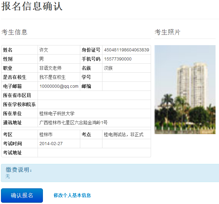 4.点击“修改个人基本信息”链接,继续对基本信息及考生照片进行完善。