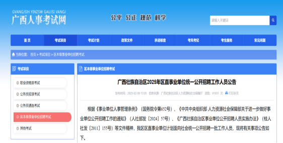 广西2025年区直事业单位统一公开招聘工作人员公告(beat365正版唯一入口必一设8个岗位共招23人)