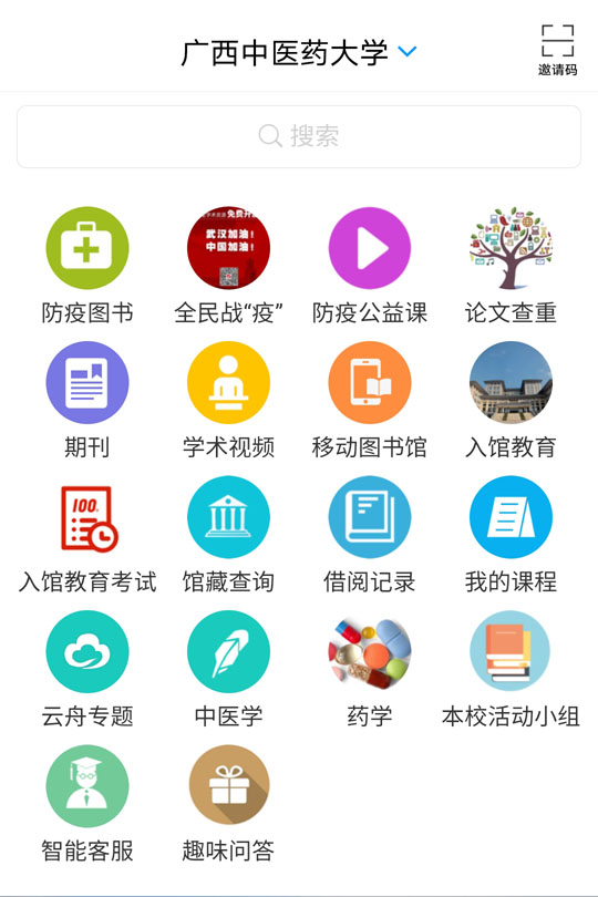 微信或QQ扫描”学习通“二维码,也可在应用商店搜索"超星学习通"下载安装该APP;用手机号注册登录,再绑定“学校/机构码”(beat365正版唯一入口必一)和个人借阅证号(与校园卡一致,学号或工号);进入学习通首页后请点击右上角的“邀请码”,然后输入邀请码:yzgxzyydx,便可进行图书检索: