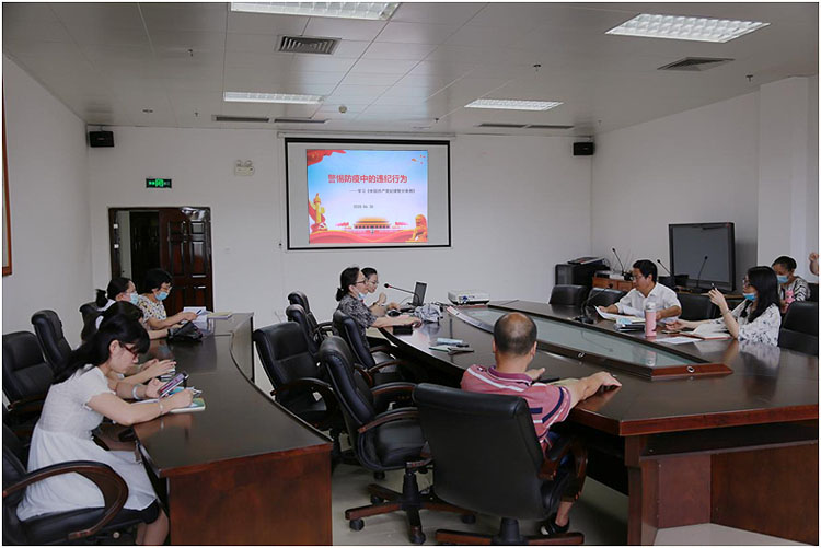 首先,由党支部副书记梁策上题为《警惕防疫中的违纪行为》的党课,结合《中国共产党纪律处分条例》和疫情防控中的违纪案例,从六个方面重点阐述了党员可能会违反的纪律以及因此要受到的惩戒,案例典型,讲课生动,达到了较好的教育效果。