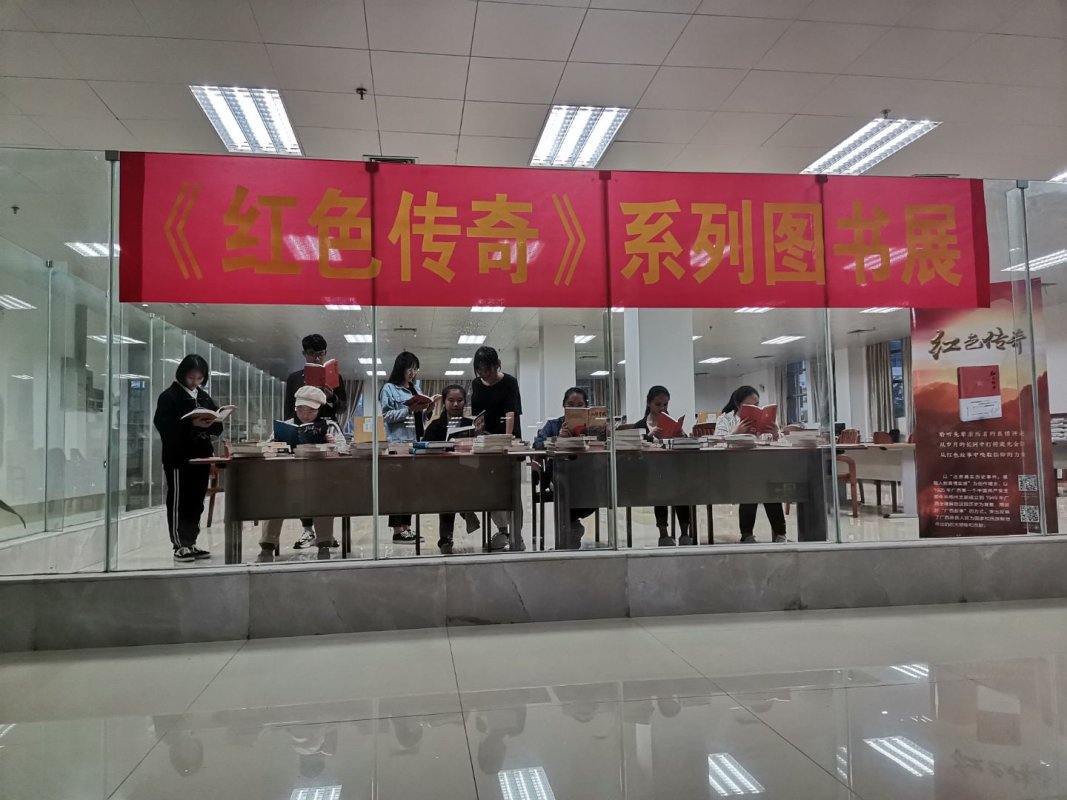 为了进一步有效推进学校“不忘初心、牢记使命”主题教育, 11月上旬,学校图书馆在仙葫校区图书馆二楼现刊室开展了《红色传奇》系列图书展读活动。这次活动一共展出50多种108册红色图书,广大师生踊跃参与研读。其中最为引人注目的是由区党委组织部出品并推介的《红色传奇》图书版。