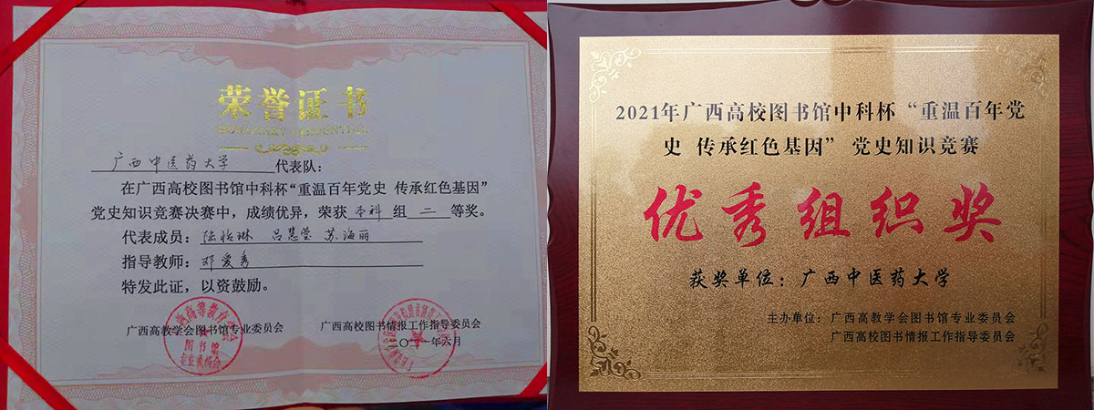 2021年广西高校图书馆中科杯“重温百年党史 传承红色基因”党史知识竞赛决赛于日前结束,由苏海丽、吕慧莹、陆怡琳三位2020级同学组成的beat365正版唯一入口必一代表队勇夺本科组第二名,beat365官网荣获“优秀组织奖”。