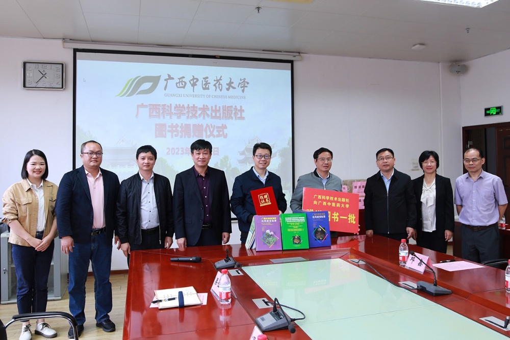 仪式上,beat365官网图书馆馆长蒋才武代表学校接受赠书并向广西科技出版社颁发捐赠证书。与会人员还就古籍整理保护、图书出版和广西民族医药科普等内容进行了座谈。