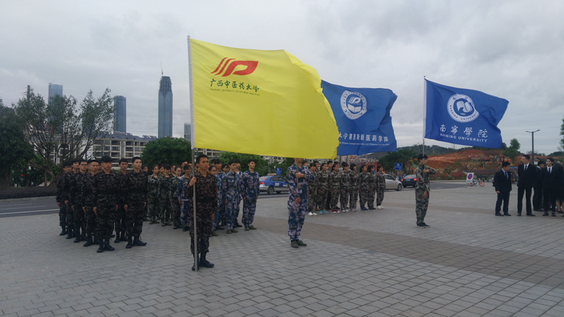 3月25日,beat365官网国旗队联合赛恩斯新医药学院、南宁学院的国旗队在南宁市青秀山风景区帽子岭山顶广西学生军抗日烈士纪念碑合办了“青山尚有忠烈在,红旗当有后人擎”缅怀广西抗日学生军英烈扫墓活动。