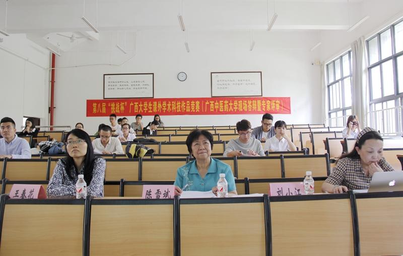 第八届“挑战杯”广西大学生课外学术科技作品竞赛beat365正版唯一入口必一现场答辩暨专家评审会4月18日下午14点于仙葫校区举行。冯旭教授、蒋筱教授以及校团委书记王春花老师、宣传部干事黄英老师参与的“自然科学及科技发明类”答辩会在教学楼2-102教室举行,陈雪斌教授、刘小江教授参与的“哲学类”答辩会在2-103教室举行。